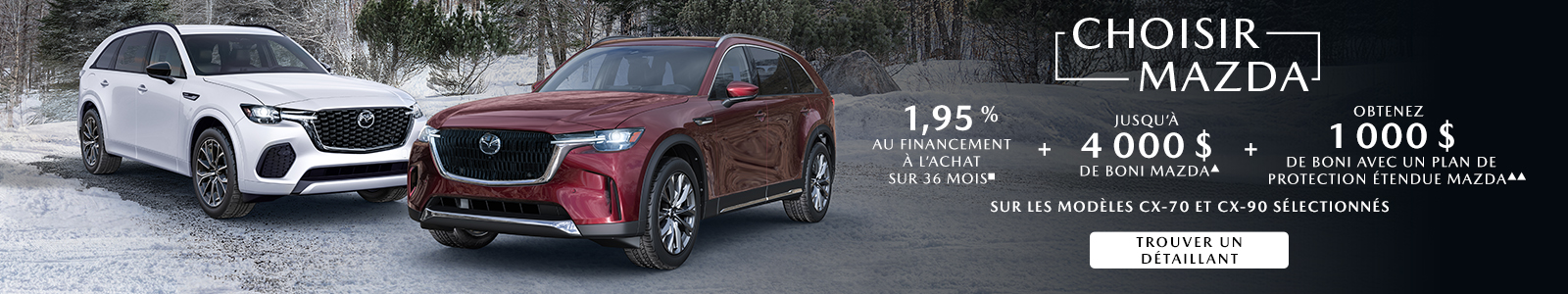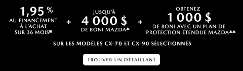 OBTENEZ 1 000 $ DE BONI AVEC UN PLAN DE PROTECTION ÉTENDUE MAZDA ▲