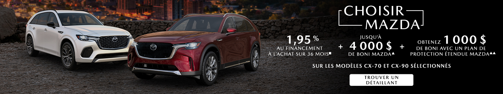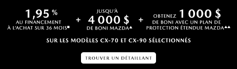 OBTENEZ 1 000 $ DE BONI AVEC UN PLAN DE PROTECTION ÉTENDUE MAZDA ▲